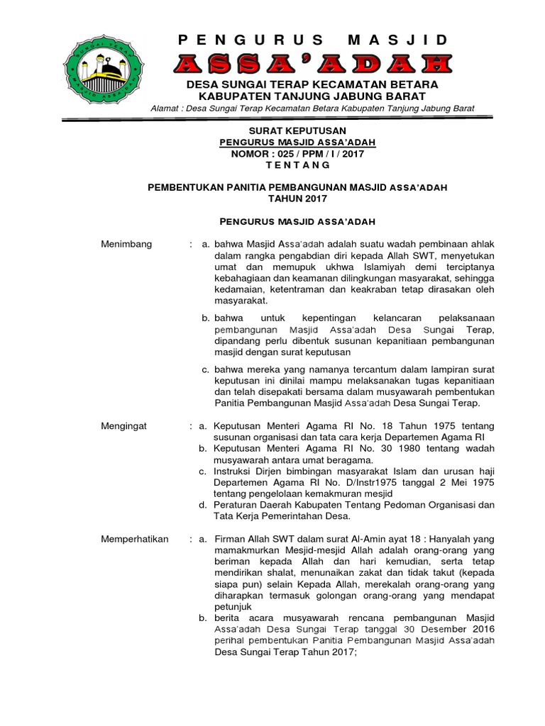 Contohpedi Contoh Sk Panitia Pembangunan Masjid Musholla1 Pdf from imgv2-1-f.scribdassets.com Maybe you would like to learn more about one of these? We did not find results for: Check spelling or type a new query.